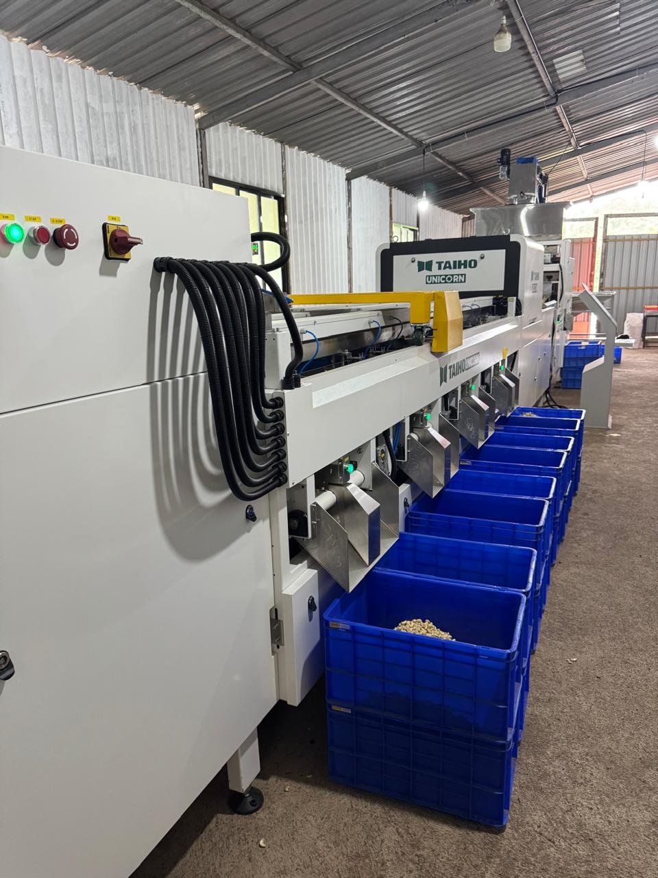 We, Taiho Unicorn, are dedicated to providing high-quality and efficient solutions for industrial automation and material handling. Our automatic cashew processing machines come with intelligent control systems, high-speed processing, and durable food-grade materials. Whether you're a small unit or a large-scale industry, these machines ensure consistent performance, lower operational costs, and maximum yield. Our range of advanced machines includes Automated Conveyor Systems, Robotic Arms, Smart Inspection Systems, Packaging Machines, Sorting Machines, and more. Leveraging our in-depth industry knowledge and the expertise of our highly skilled team, we specialize in developing cost-effective, high-performance automation solutions. Our goal is to reduce operational costs and enhance productivity for our clients. We achieve this by offering cutting-edge technology that improves sorting, grading, and material handling processes. To ensure maximum convenience, we provide doorstep delivery, flexible payment options, and excellent after-sales support.